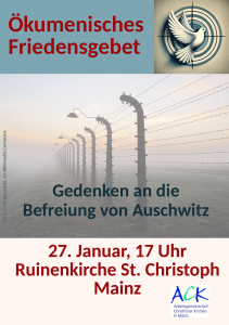 Monthly Peace Prayer in Mainz with a focus on special events and commemorations. The next service is on Wed. 27.1.2026 at 5.00 pm